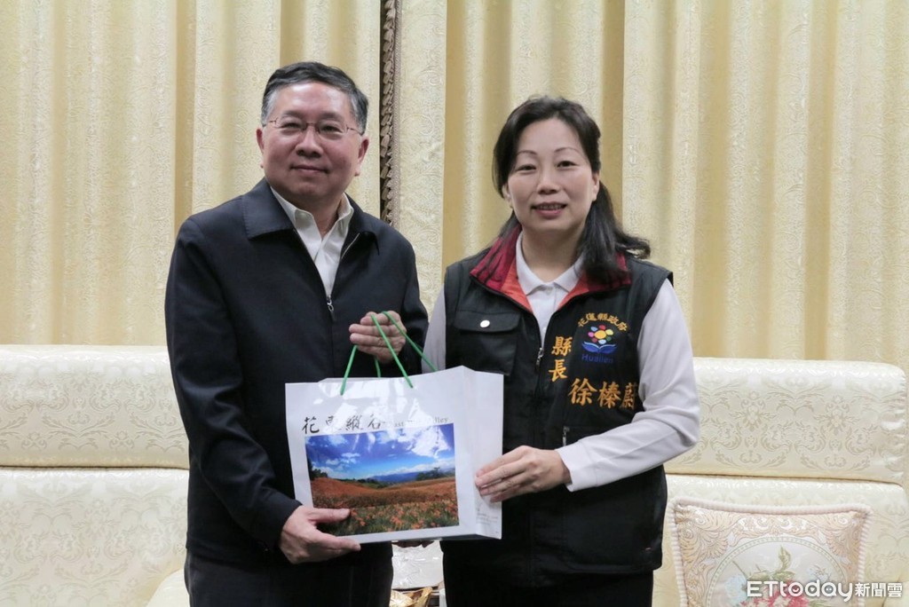 ▲縱管處新任處長楊瑞宗(左)拜會花蓮縣長徐榛蔚,雙方就鯉魚潭整體觀光發展、鳳林遊憩區等深入討論合作。(圖/花蓮縣政府提供,卞同)