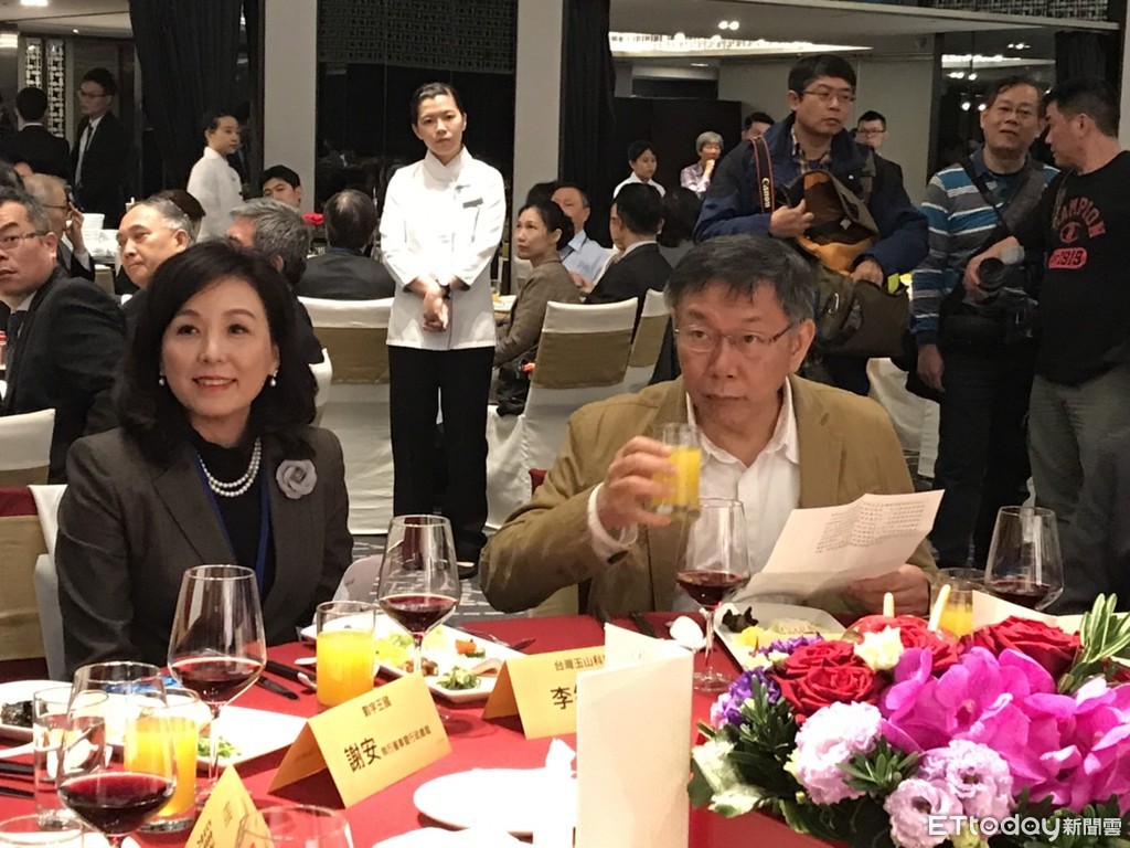 ▲台北市長柯文哲應邀出席台灣玉山科技協會春酒晚會,左為理事長李紀珠。(圖/記者李蕙璇攝)