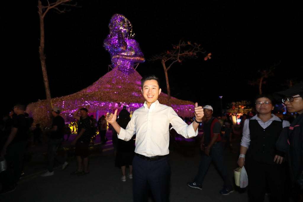 竹市府團隊欣賞「巨鮪來富」主燈並走訪各燈區,林智堅沿途也被許多民眾認出,熱情歡迎他來到國境之南,更在路上異地巧遇「同鄉」新竹人搶合影。林智堅表示,今年的燈會成功亮眼,外媒也都可以看到成果,潘縣長短短一年籌畫如此精彩感動的燈會,很敬佩,這次燈會不僅有傳統燈會元素,還有創新發想,包括與intel合作的無人機表演,與充滿在地意象的黑鮪魚主燈「巨鮪來富」;今天新竹市府抱持學習取經的態度前來,相信對2021的燈會有實質收穫。