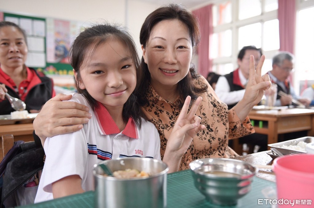 徐榛蔚首先到學校配膳室視察,經由廠商介紹今日菜色及每日菜單後,隨後至教室與學生們一起用餐,學生一見縣長到來,精神飽滿地問候道好,她親切叮嚀孩子們飲食要均衡、不要偏食,多元攝取各式營養素,才能健康茁壯,場面溫馨。