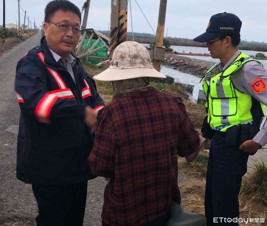▲台南市佳里分局七股所副所長楊宗勳所率員警3人,在十份里海埔30號前道路尋獲阿嬤。(圖/記者林悅翻攝)