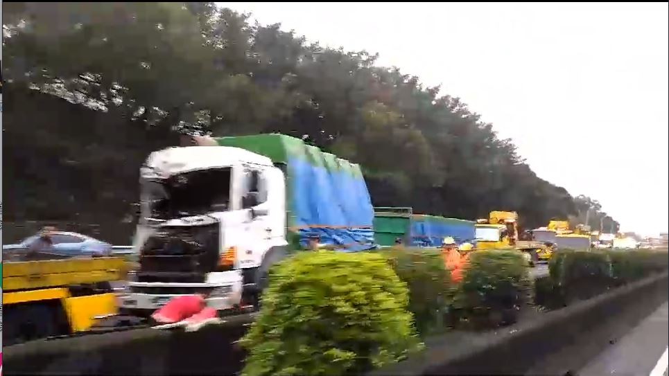 ▲25日上午8時許接獲報案,國3北上102.8公里發生大貨車追撞事故。(圖/記者陳凱力翻攝)
