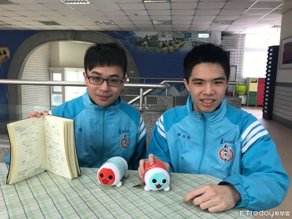 ▲楊彬(左)會將寫錯的題目客製成錯誤筆記本。徐有齊(右)透露在固定時間都會和同學玩太鼓達人舒壓。(圖/記者許展溢攝)
