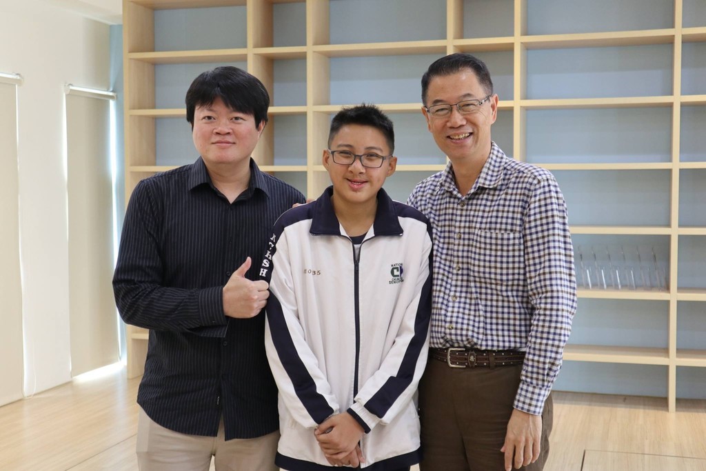 ▲ 張益嘉和導師廖堂智(左)、校長張瑞杰的合照。(圖/取自中興高中)