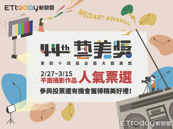 素有「學生小金鐘」美譽,由國立臺灣藝術大學舉辦的「藝美獎」今年正式邁入第44年,現正與《ETtoday新聞雲》獨家舉辦「平面攝影作品人氣票選」活動,只要每天開啟新聞雲App,滑動你的手指,投票給所有你喜歡的平面攝影作品,不限件數,就有機會抽中原燒餐券、西堤牛排餐券、陶板屋餐券…等多項豐富獎品喔!
