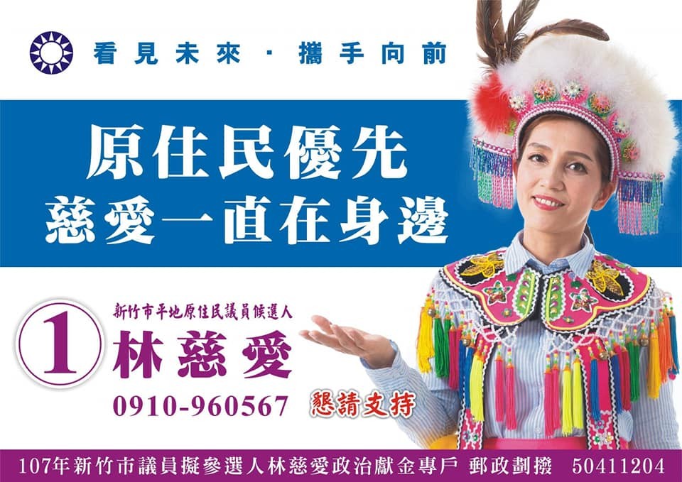 ▲新竹市原住民市議員林慈愛和助選的丈夫樊大衛遭檢舉涉及賄選,新竹地檢日前做出不起訴處分。(圖/翻攝林慈愛臉書,下同)