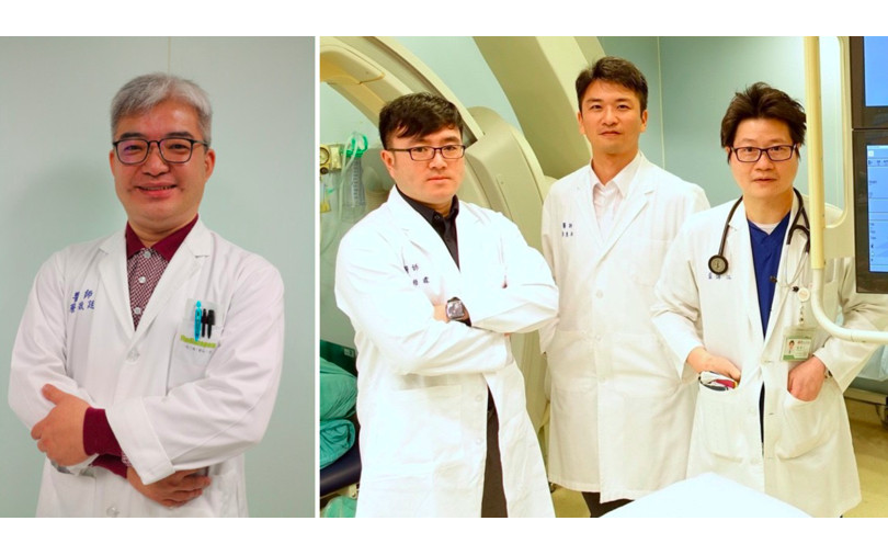 ▲高血壓導管治療也能治高血壓,馬偕醫院心臟內科團隊累積全台最多治療案例,右起為馬偕醫院心臟內科資深主治醫師藍偉仁、馬偕醫院心電生理專家李應湘醫師與新竹馬偕醫院心臟內科主治醫師林柏霖。