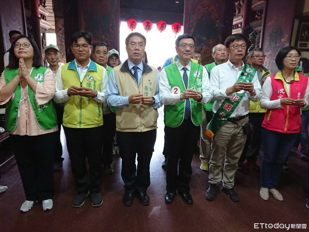 ▲民進黨卓榮泰主席2月27日率中常委移師台南召開臨時中常會,並向代天府的神明、王爺稟明徵召郭國文的經過。(圖/記者林悅翻攝,下同)