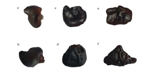▼三個黑木耳栽培種代表三個品系:無筋的正面和背面(a和b),半筋的正面和背面(c和d),全筋的正面和背面(e和f)。(圖/蘇州生物醫學研究所)