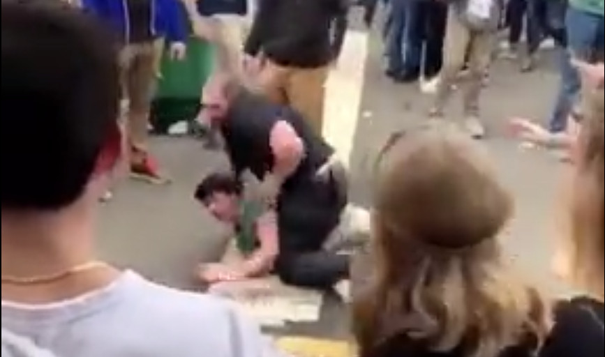 根據網站《BUSTED COVERAGE》報導,有2人在一棟建築物內因酒後發生衝突,綠衣男頻頻另一名男子推打,後來保安先是將綠衣男抱住後摔,接著將他壓制在地,引起現場民眾圍觀。