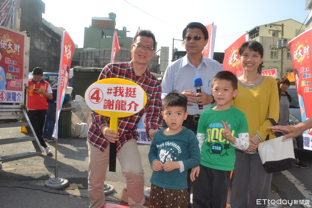 上午9時不到,謝龍介來到善化公有零售市場,妻子李佳芬先進入市場拜票,謝沿著中興路進入市場,沿街和商家打招呼,不斷有粉絲上前握手並要求合照,展現高人氣。甚至有南下旅遊的桃園地區民眾,獲知謝龍介要到善化拜票,也趕來為謝龍介加油,讓團隊更有信心打贏這場選戰。