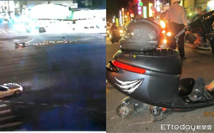 整起事故發生在26日下午7時許,警方獲報趕往現場後,只見一部gogoro電動機車橫躺於路口中,但後輪卻不翼而飛,而調閱監視器後發現,當時戴姓男騎士騎gogoro由北往南行駛於民族一路慢車道上,期間後輪卻突然脫落,導致路面上出現大片火花,而輪胎還一路滾至對向車道的十全果菜市場內,所幸無波及其他用路人。