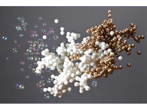 一樣是泡泡的設計,但除了透明的小球外,還加上白色以及金色小球。至於意義何在?留給大家獨自闡釋吧!