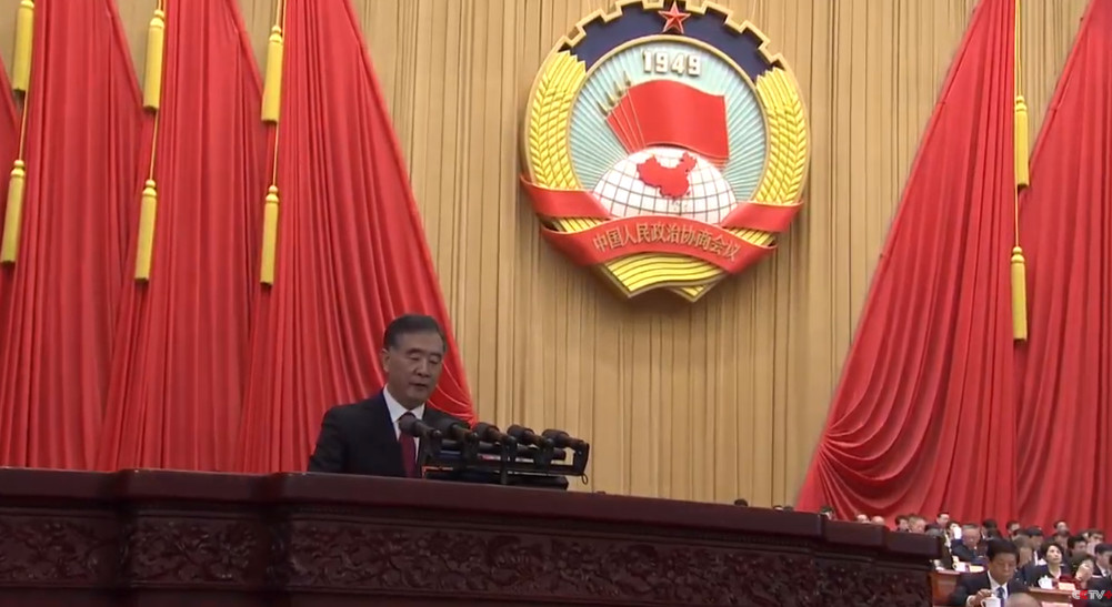 ▲汪洋在全國政協開幕會上報告。(圖/翻攝央視)