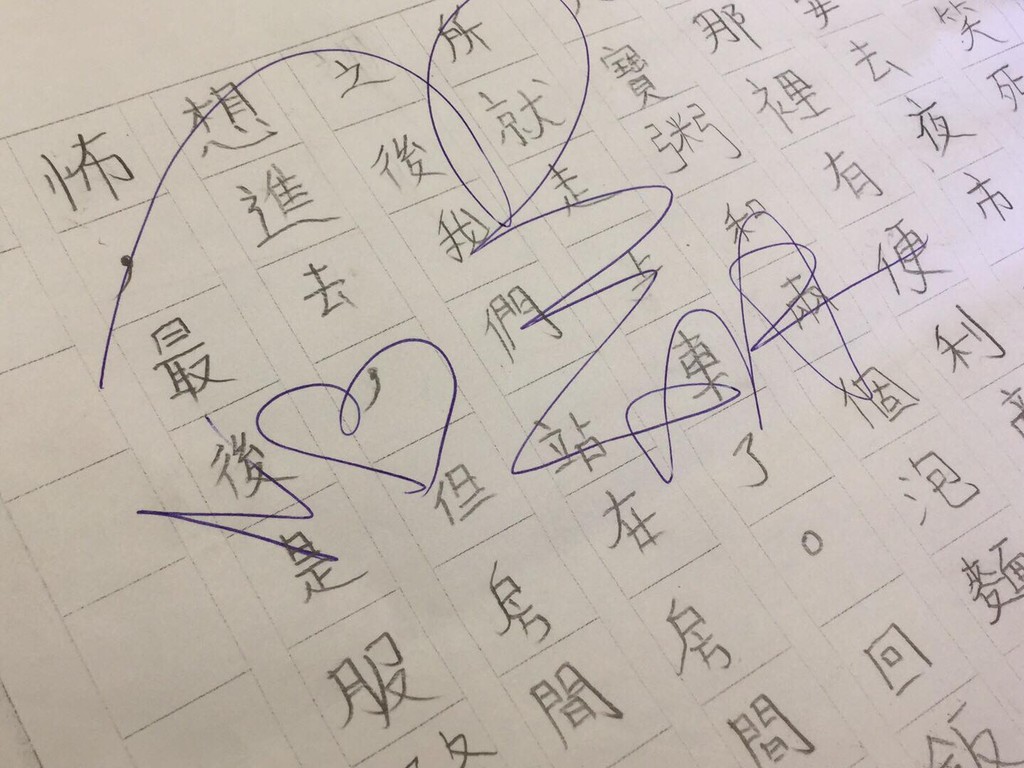 女老師4日在「爆怨公社」臉書社團說,學生「以為阿翔會在邊邊簽小小的,沒想到簽了四分之一張⋯」根據她貼出的照片,學生在簽著大大「阿翔」兩字的稿紙上寫作業。
