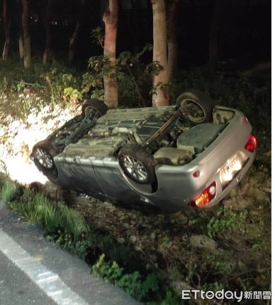 ▲阿里山公路觸口路段自小客車翻覆,車上駕駛送醫不治。(圖/記者翁伊森翻攝,下同)