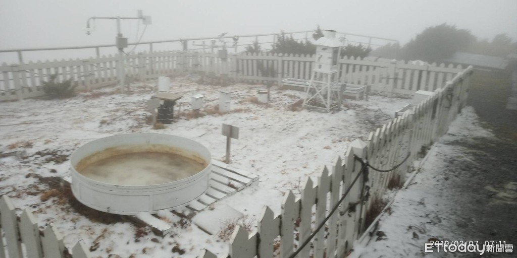 中央氣象局玉山站表示,從昨(6)日晚間7時01分觀察到「雨中夾雪」,過程持續50分鐘,不過沒有積雪,到了凌晨溫度掉到1度左右且水氣充足,從2時10分開始下雪至3時50分為止,積雪1公分,清晨5時開始起霧,能見度只有10公尺左右,溫度上升至2度,雪正溶解中。