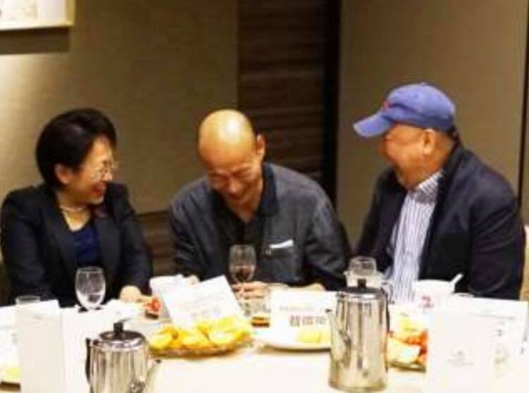 ▲韓國瑜坐在席間低頭微笑。(圖/翻攝自Facebook/王浩宇)