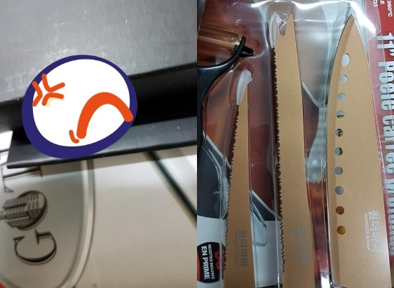 一位網友在臉書「爆怨公社」中抱怨,他表示日前在購物台買了一組刀具,不知是廠商問題還是運送過程出包,鋒利的刀子竟然刺穿紙盒,他也沒注意到,手就因此被割傷了。他表示這把刀子是買刀具組所送的贈品,另外3把刀子中,有一把的刀鋒缺少了保護套包著,有種接收別人的退貨的感覺。