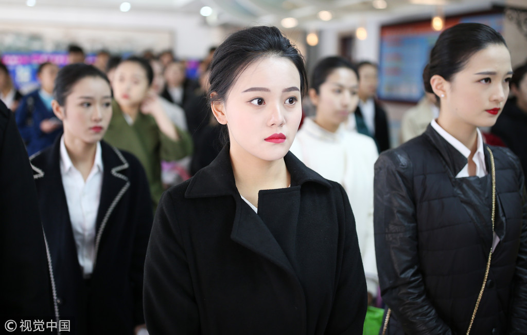 ▲數據顯示,大陸職場女性收入低於男性,圖為東航山東分公司招聘服務員,現場彷彿選美大會 。(圖/CFP)