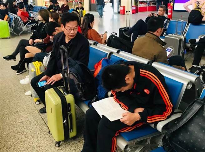 ▲在前往考試會場的路上,候車期間朱政也不忘讀書 。(圖/翻攝自6parker討論區)