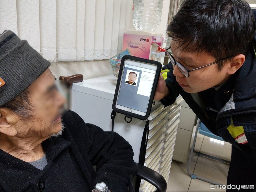 ▲龜山分局員警利用人臉辨識系統詢問陳姓老翁,最後順利連絡上家人領回。(圖/記者沈繼昌翻攝)