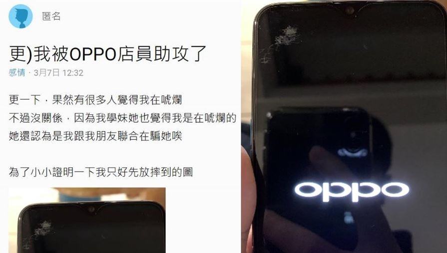 近日一名網友在Dcard感情版發文,標題以「我被 OPPO 店員助攻了」,分享自己追女友的特殊經驗。內容寫道,原PO最近和一位學妹正在曖昧中,兩人相處得很好,有一次用手機邊走邊跟她聊天時,學妹問他:「學長你這麼好笑怎麼會沒女朋友阿?」原PO當下心想,這應該是告白的好時機!於是打算要拋出直球直接告白時,卻因為太過於緊張把手機給摔到柏油路上,結果手機竟然就打不開了。