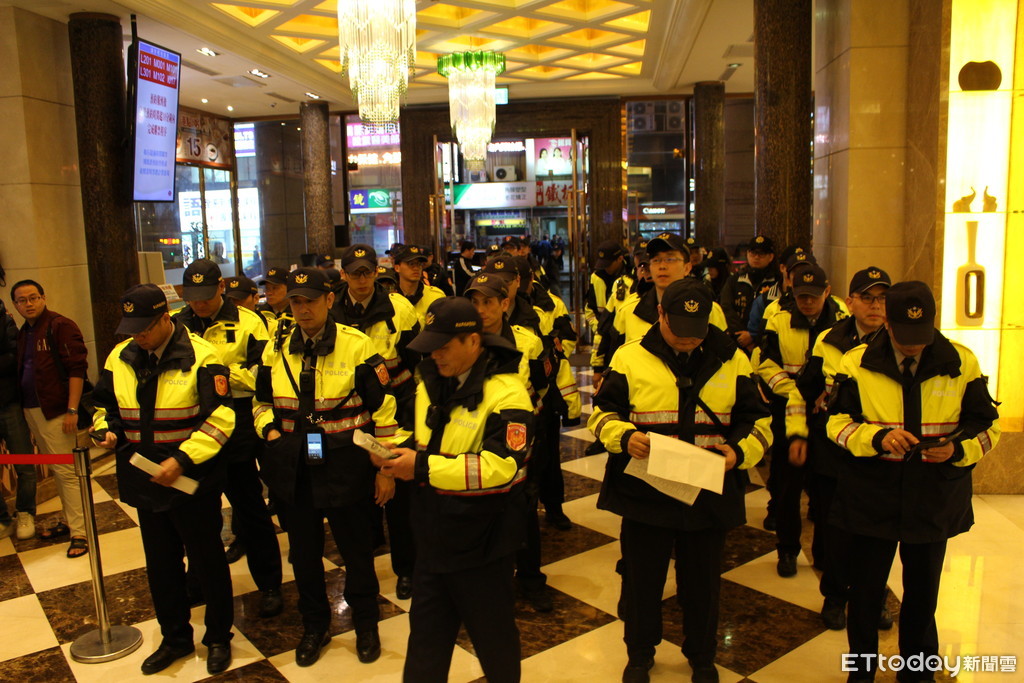 ▼行政院長蘇貞昌嗆「如果鬥毆發生在門口,就換掉地方警察局長」,大批警力集結KTV門口準備進入臨檢。(圖/記者陳以昇翻攝)