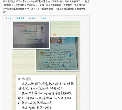 福建30歲男子蘭天11年前與一名女網友失去聯繫,最近跟父親聊天,才知道當時父親怕影響他學習,默默把網友寄給他的信扣下來。蘭天看著遲了4088天的信,百感交集,在微博發表回覆,被網友瘋狂轉發。