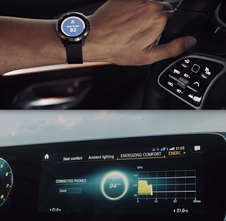 此外,MBUX亦會因應配戴Garmin voactive 3 GPS智慧腕錶的駕駛者相關生理數據回饋,播放刺激或紓緩的音樂、調整溫度、環境燈、氣味,甚至是調整按摩模式等,透過Garmin智慧腕錶數據整合,為車主量身打造最適用車環境與建議行車路線。