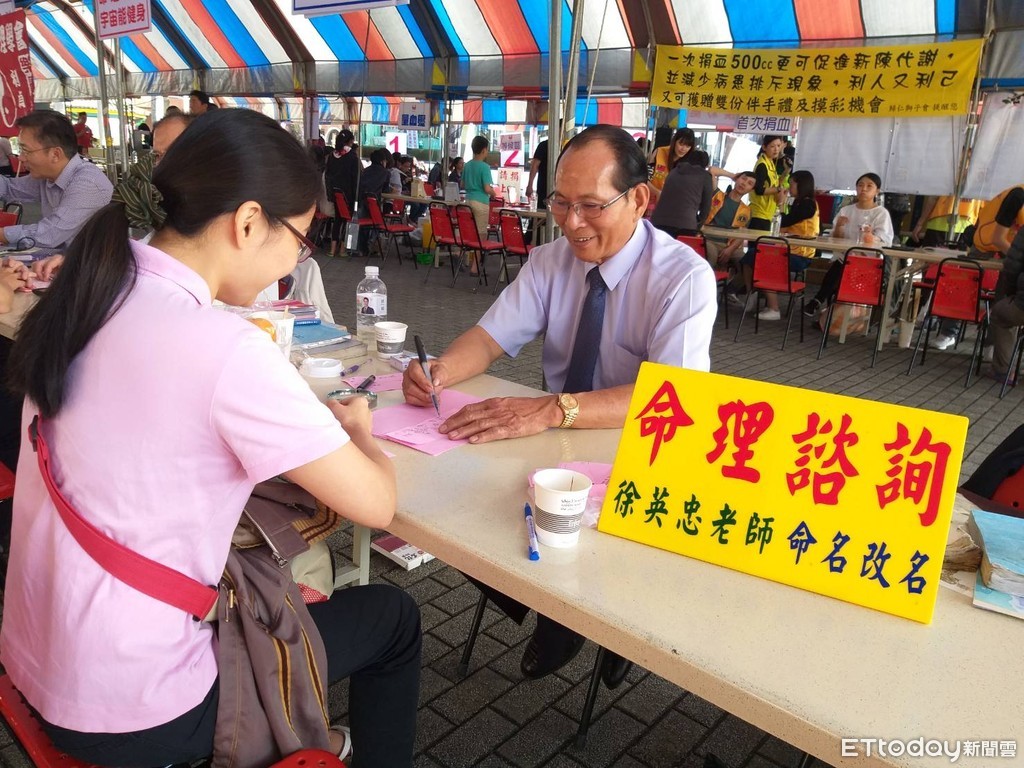 ▲命理師徐英忠不時應邀到各種活動場合,免費替民眾算命。