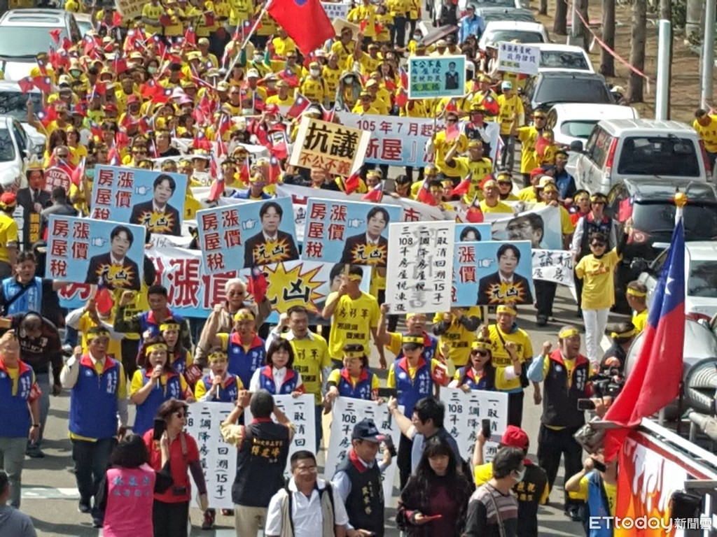 ▲千名怒氣沖天的鄉親,3月12日上午組成「房衫軍」在市議會國民黨團書記長蔡育輝等議員率領下,前往永華市政中心抗議。(圖/記者林悅攝)