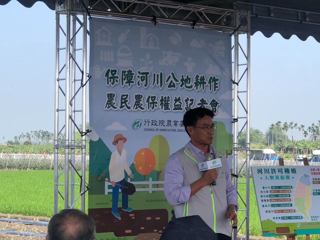 農委會主委陳吉仲今(12日)到彰化縣二水鄉河川公地,召開「保障河川公地耕作農民農保權益」記者會,宣布只要農民持有「河川公地種植許可書」,耕作土地位於河堤內外,都可申請加入農保,解決未來青年農民持有河川公地許可書且實際務農,卻無法參加農保的問題。