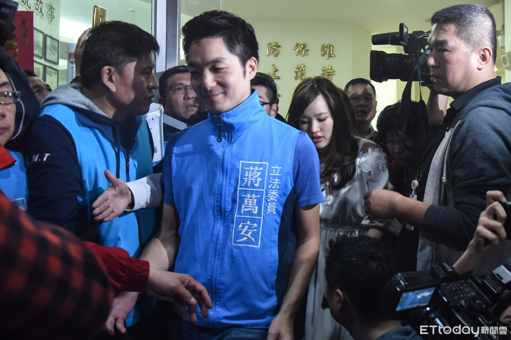 ▲韓冰、蔣萬安陪同國民黨三重立委候選人鄭世維掃街,眾多支持者一路跟著擠入暗巷,場面混亂,造成「夢幻助選員」十分狼狽。(圖/記者林敬旻攝,下同)