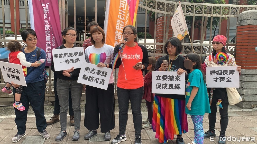 立法委員賴士葆等人在日前為反同方提出《公投第12案施行法》草案,將在明(15日)進行一讀,今(14日)台灣同志家庭權益促進會站在立法院前,請賴士葆撤回提案,除了同志家庭出面訴說處境,也有異性戀的代表團體、家長出面力挺。親子共學團代表人小熊就說,「其實同性伴侶組成的親職,對孩子來說並不影響感受到愛的能力,要做好親職工作與性別無關,而是與願不願意學習成為好的家長、願不願付出愛有關。」