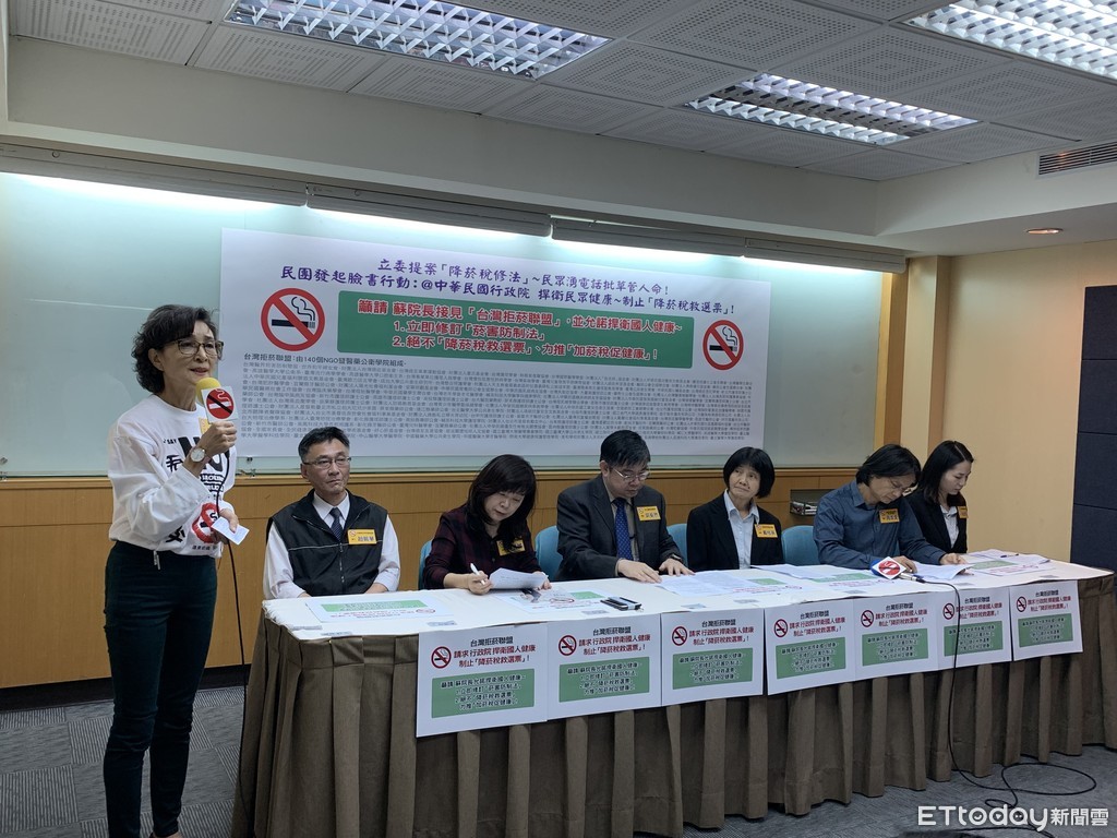▲董氏基金會菸害防治中心主任林清麗及「台灣拒菸聯盟」各界代表,召開記者會反對「降菸稅救選票」。(圖/記者林育綾攝,下同)