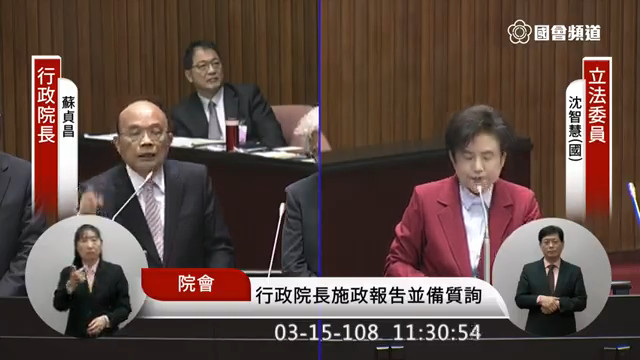▲沈智慧要求蘇貞昌承諾酒駕公務員不得升遷。(圖/翻攝國會議事)