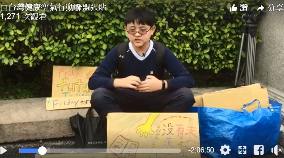 桃園高中13位學生從今天早上7點就開始針對氣候變遷危機議題在彰化高中集合進行演說,更在10點前往總統府前靜坐舉牌,活動中更有一名12歲小六學生從彰化北上,手舉「沒有未來,何必上課」的自製標語,展現對未來的憂慮與對氣候議題的關注,而整個團隊下午2點到2點50分也會響應「FridaysForFuture」活動。主辦單位指出,同時間台中特殊教育學校也有14位高三生,也在校門口靜坐舉標語,希望能打破台灣學生對氣候變遷的無感,為了自己的未來站出來。