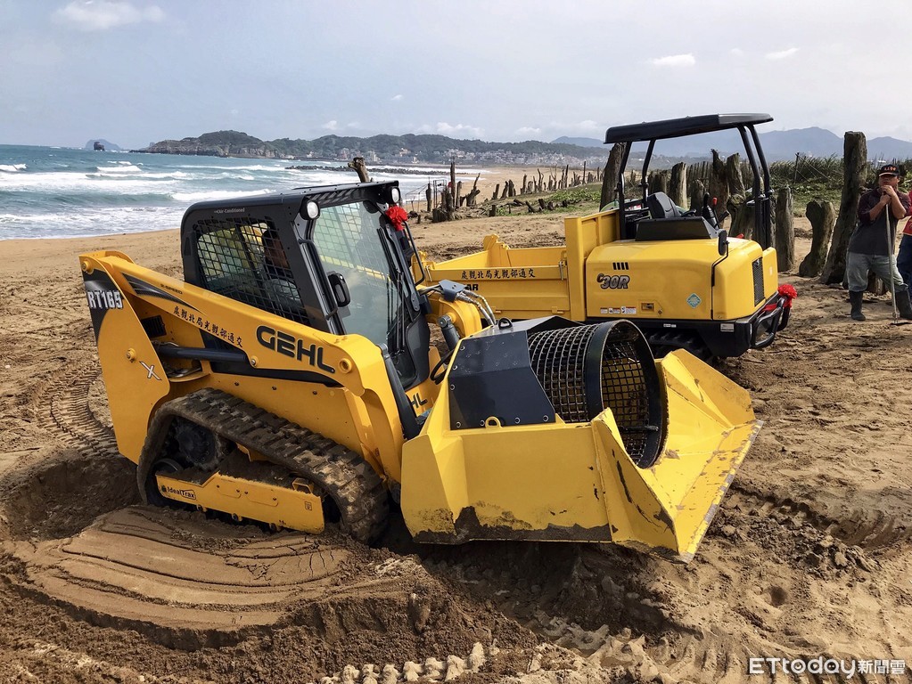 交通部觀光局北觀處購置沙灘清理車組「履帶式鏟裝車1輛、搬運車1輛」,15日下午2時在北海岸中角灣舉辦啟用儀式,並與在地社區結合,成立中角灣淨灘車協力隊,投入沙灘清潔維護工作。北觀處長張振乾表示,該車組每個月可取代60人次清潔人力,每年可節省約120萬清潔費,有助縮短清潔工時,提昇清潔效率。