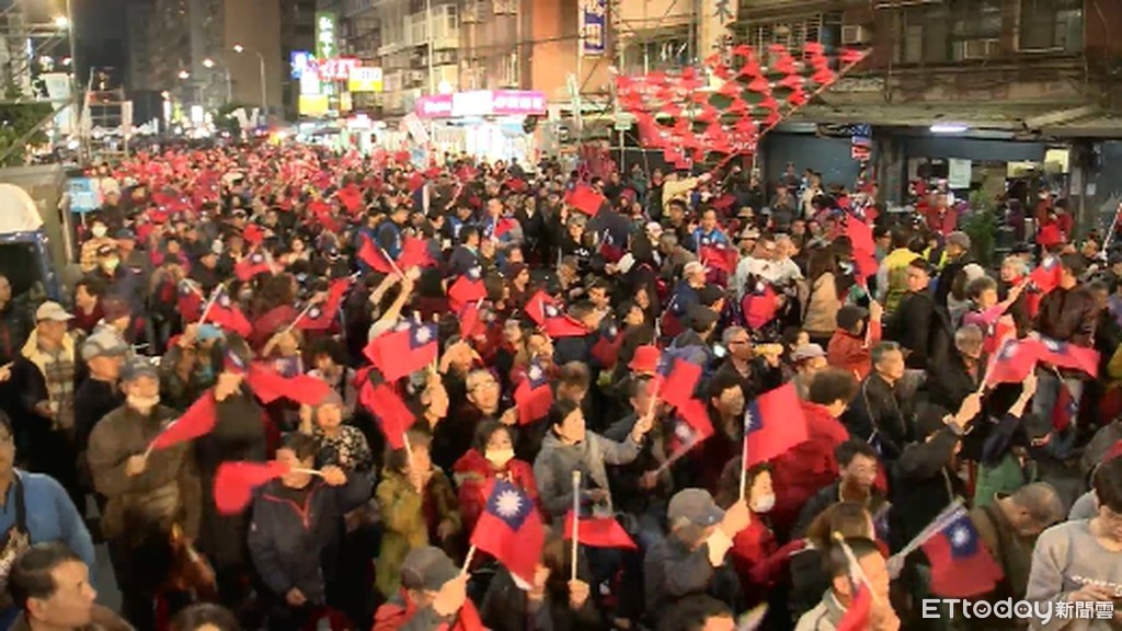 國民黨三重區立委補選候選人鄭世維15日的「選前之夜」卡司超強,高雄市長韓國瑜、女兒韓冰北上三重站台。現場萬張椅子,開場前就被支持者坐滿,人手一支國旗揮舞,「國旗海」場面壯觀。