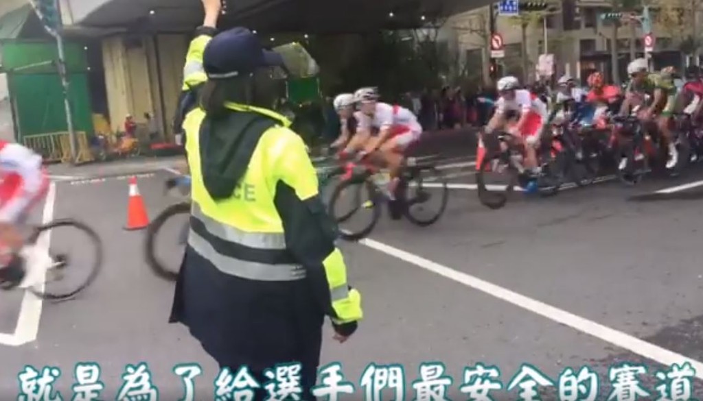 臉書粉絲專頁「大安波麗士」PO文表示,「一年一度的國際自行車環臺賽又來囉!!選手們速度之快,讓女警頭髮都飛起來了呢,但大安波麗士們仍無所畏懼,努力為選手們打造安全的賽道。」此外,從影片中也可以看見,警察們為了能順利維護交通秩序,事先還做了勤前教育,而當天還辛苦地站在馬路中指揮交通,為的就是讓選手們有安全的騎車空間。