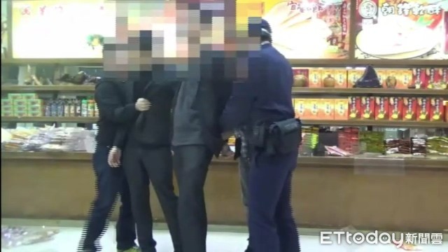 ▼▲2名自稱天道盟的黑衣人名產店討債砸店,宜蘭警方快打壓制逮2人並聲押獲准。(圖/記者游芳男翻攝,下同)