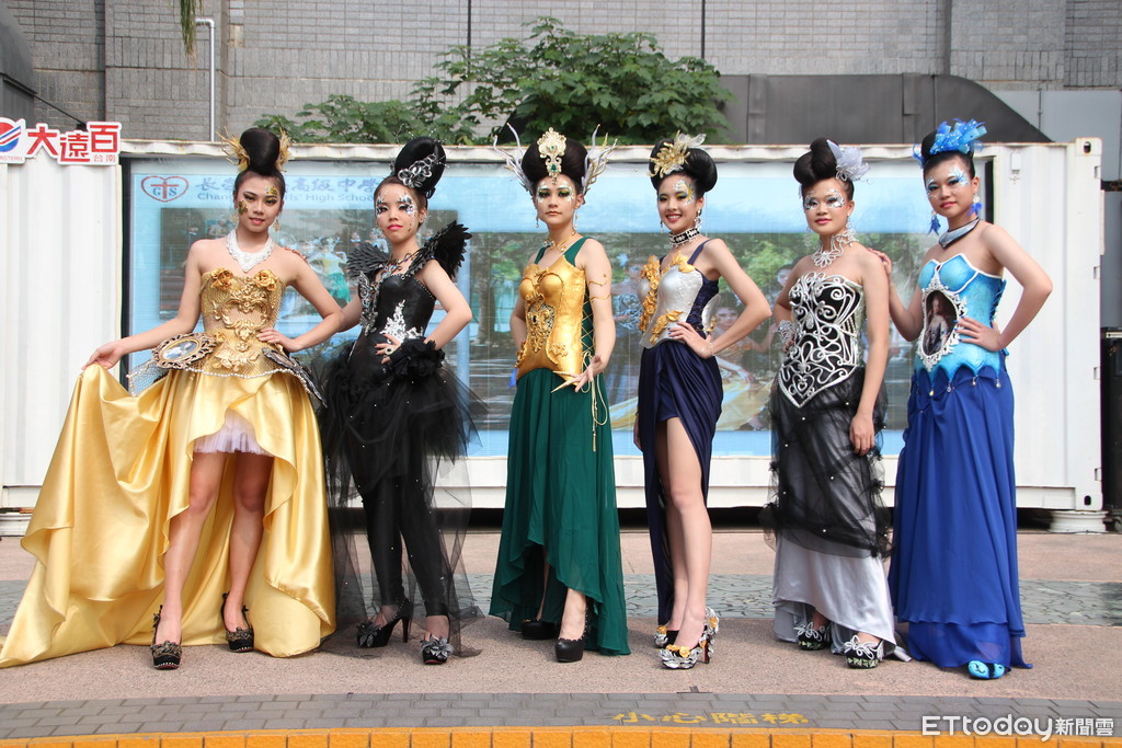 以培養技術人才著稱的長榮女中,學生歷經3年的學習,現正展開成果驗收。今年有別以往,將畢展移師校外分批快閃,與民眾分享教學成果。美容科、時尚造型科、時尚模特兒科展現的是整體造型功力,從頭到腳,包括髪型、彩妝、指甲及人體彩繪、服裝、鞋子、所有的配件飾品,全都是學生手工製作,除了一般常見服裝布料、飾品材料,學生也運用各種特殊素材,挑戰高難度的縫製技巧。