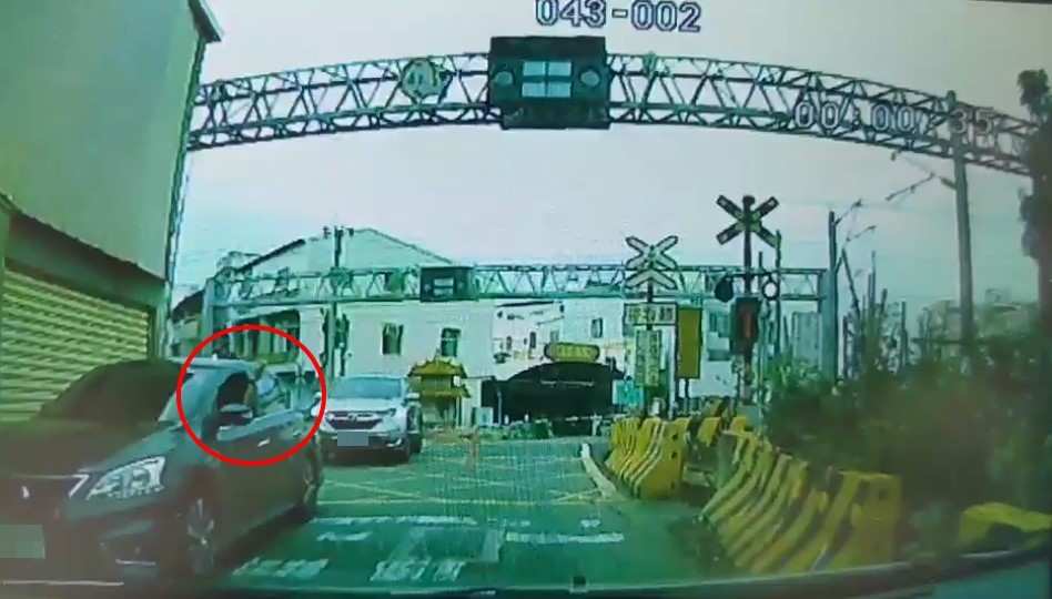 影片中可見,一輛黑色轎車起初快速通過平交道,但不知為何突然停下,導致後方的銀色休旅車受困平交道上。當時休旅車動彈不得,副駕一名女乘客立刻衝下車將前方柵欄抬起,試圖讓車輛從縫隙中通過;短短20秒後,一輛自強號疾駛而過,好在當時休旅車已脫離鐵軌區域,才未釀成憾事。