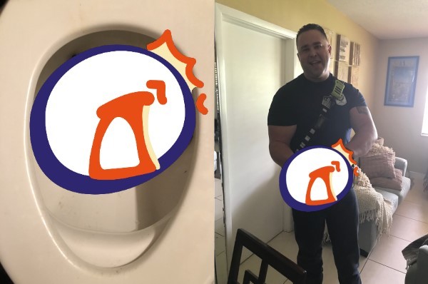▲馬西亞回家看到馬桶裡躲著一隻綠鬣蜥。(圖/翻攝自推特/@FLFR411,下同)