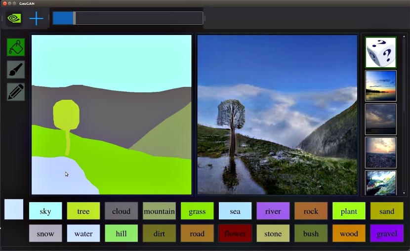 GauGAN是以後印象派畫家高更(Paul Gauguin)作為命名靈感,從建築師、城市規劃者及景觀設計師到遊戲開發人員,GauGAN可以作為創造虛擬世界的強大工具,透過人工智慧來了解現實世界的景物外觀,這些專業人員能更好地描繪出自己的想法原型並快速更改場景。