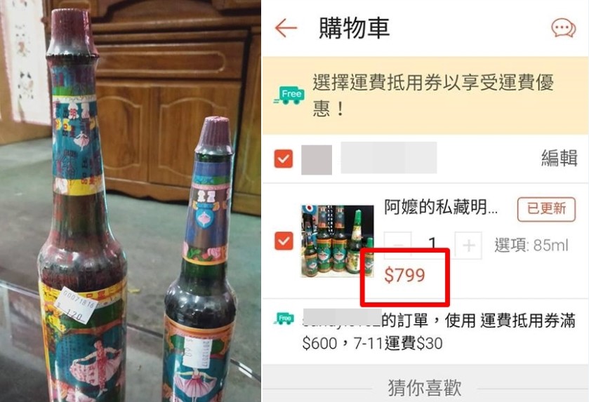 聽到明星花露水停產消息,她趕緊出門到各家藥局買,但都沒有找到,只好上某網購平台搶購,終於搶到2瓶,但1瓶容量85ml要價399元,再加上30元運費,一共消費828元,雖然比一般貴但她開心到不行;沒想到5分鐘後,她再看一次訂單,竟然變成「已被取消」狀態,才發現是賣家做的。