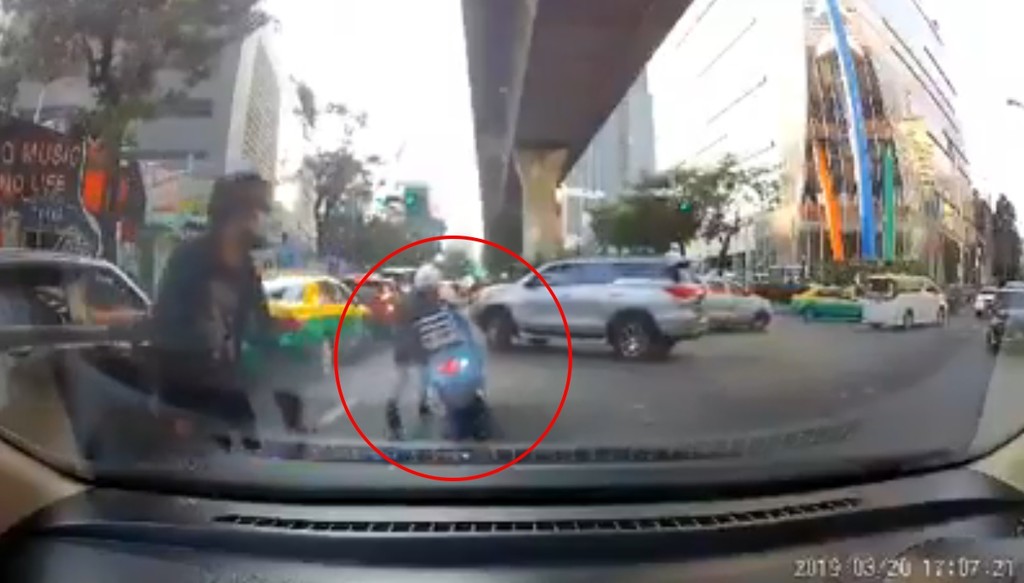 雖然原PO並沒指出影片中地點,但眼尖的網友從計程車顏色判斷,這起車禍應該不是發生在台灣,有可能是在泰國。
