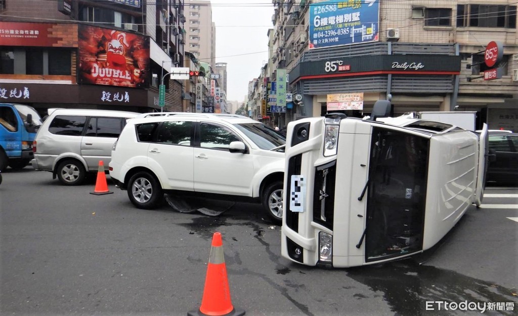 ▲直行休旅車遇上違規左轉的廂型車,攔腰撞翻。(圖/記者李忠憲翻攝)