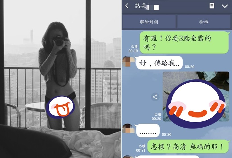 「聊妳妹豬血糕啦!」桃園一名女網友下班時手機突然跳出LINE通知,她一打開看訊息整個傻眼到爆,只見一名弟弟密她說「可以聊色嗎?你有露點照嗎?」她也很大方狂聊10分鐘,甚至丟出3點全露照;不過,她可不是省油的燈,用2招直接電爆屁孩,吃鱉吃到說不出話來,只敢已讀不敢再回。